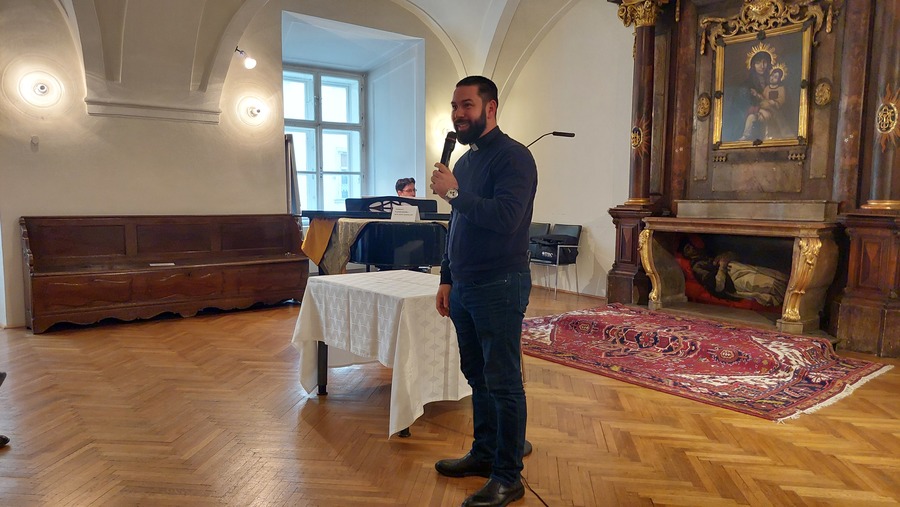 P. Provinzial Márton Gál begrüßte die zahlreich erschienenen Gäste im Kapitelsaal des Klosters St. Michael. In seiner Ansprache stellte er die Frage, ob man in Zeiten künstlicher Intelligenz überhaupt noch ein Forschungsinstitut brauche. KI-Systeme könnten viele Berufe ersetzen, so auch Historiker:innen, und sogar Fachbücher innerhalb weniger Stunden verfassen. „Doch all das ist Technik. Wir fragen uns: Wo bleibt das Herz? Es braucht nicht nur Verstand – es braucht auch Herz“, so P. Provinzial Márton Gál. Hinter dem Forschungsinstitut stünden Menschen, Gesichter, Herz und Geist. Und gerade sie seien es, die uns mit dem Wissen der Vergangenheit auf die Zukunft vorbereiteten.