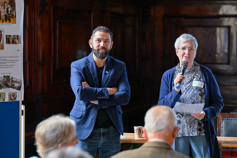 P. Martin griff das Tagungsmotto auf: „Wo zwei oder drei in meinem Namen versammelt sind…“ Kein frommer Satz, sondern Erfahrung – wenn Menschen zusammenkommen, entsteht Raum. Sr. Maria sprach von einem leisen Anklopfen Gottes in jedem Menschen. Die Welt sei in Bewegung, im Umbruch – umso mehr brauche es Menschen, die sich anstecken lassen, die mitgestalten, sichtbar im öffentlichen Raum. Nicht laut, aber verlässlich. Nicht perfekt, aber präsent.
